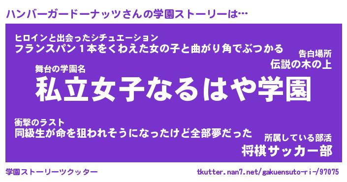 | 伝説のあだ名 | 『封印されしスナイパーハンバーガードーナッツ』 |