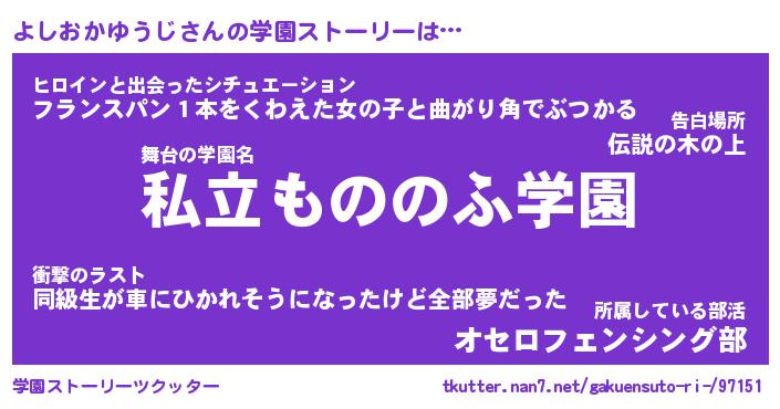 | 女子向けラノベタイトル風あだ名 | 『よしおかゆうじ姫と円卓の騎士』 |