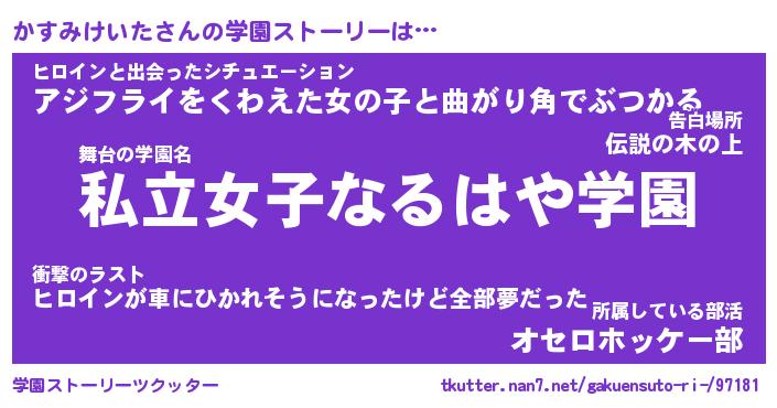 | 肩書あだ名 | 『かすみけいた店長』『かすみけいた担任』 |