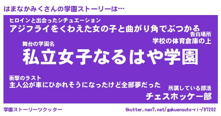 | ヒーロー風カッコイイあだ名 | 『スーパーハマナカミク』『炎刃騎士ハマ』 |