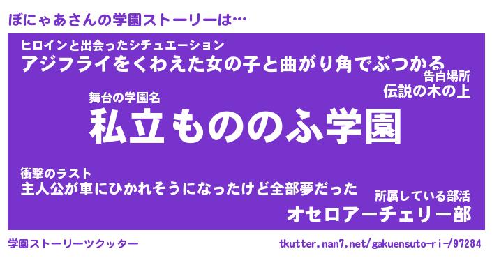 | 女子向けラノベタイトル風あだ名 | 『(仮)ぼにゃあのやんごとなき事情』 |