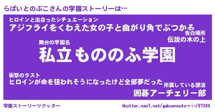 | 女子向けラノベタイトル風あだ名 | 『(仮)らばいとのぶこのやんごとなき事情』 |