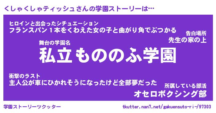 | 男性向けラノベタイトル風あだ名 | 『くしゃくしゃティッシュの憂鬱』 |
