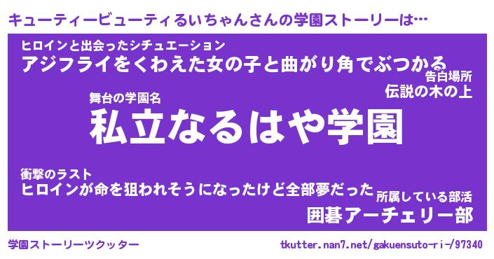 | 胡散臭い通販商品みたいなあだ名 | 『必ず成功する霊験あらたかなお札…その名も「キューティービューティるいちゃん」』 |