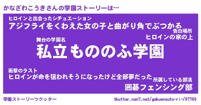 | 男性向けラノベタイトル風あだ名 | 『かなざわこうきの憂鬱』 |