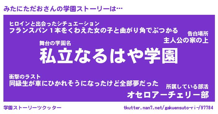| 告白場所 先生の家の上 …「ふぃぎゅこ」 | 2月17日 06:24 |