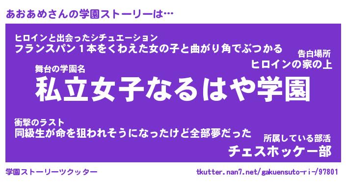 | 伝説のあだ名 | 『封印されしスナイパーあおあめ』 |