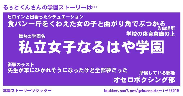 | 伝説のあだ名 | 『不死鳥のスナイパーるぅとくん』 |