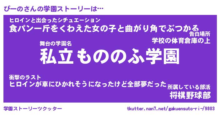 | 男性向けラノベタイトル風あだ名 | 『びーのの憂鬱』 |
