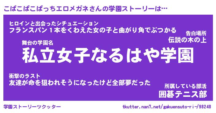 | 胡散臭い通販商品みたいなあだ名 | 『モテモテ間違いなし霊験あらたかなお札…その名も「こばこばこばっちエロメガネ」』 |