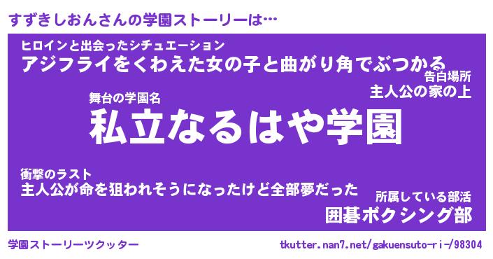 | 女子向けラノベタイトル風あだ名 | 『(仮)すずきしおんのやんごとなき事情』 |