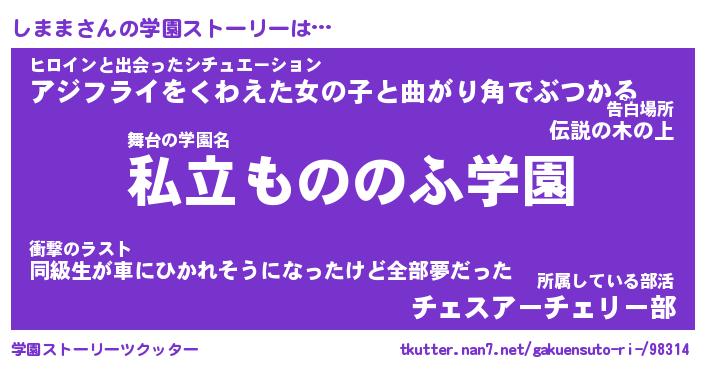 | ファンタジー風あだ名 | 『シマフェル』『エターナルシママー』 |