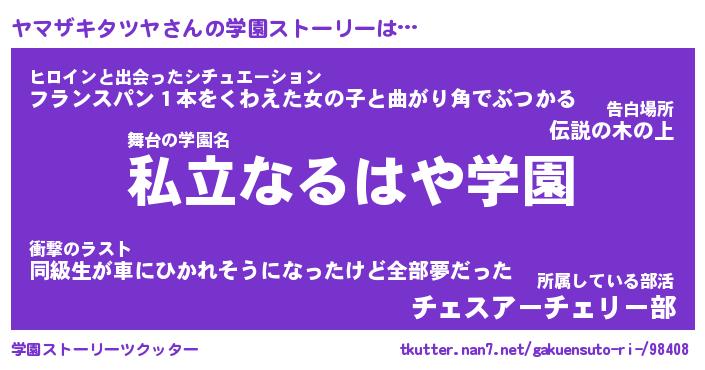 | 女子向けラノベタイトル風あだ名 | 『ヤマザキタツヤ姫と円卓の騎士』 |
