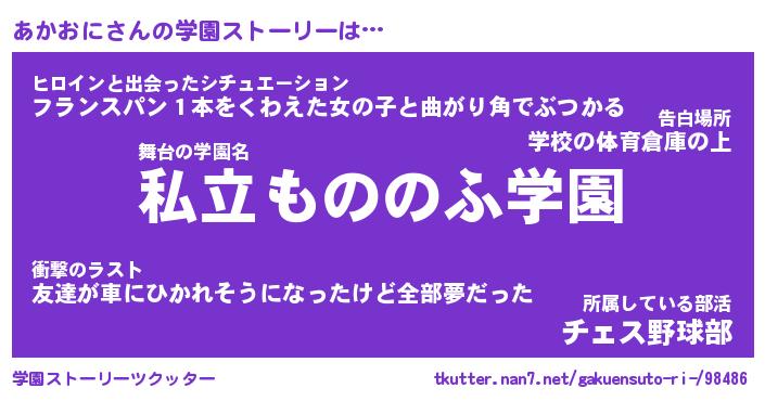 | 意味不明あだ名 | 『ペロリンあかおに』『永久保存あかおに』 |