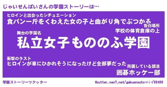 | 女子向けラノベタイトル風あだ名 | 『誰かこのじゃいせんぱいを説明してください! ~契約から始まるウェディング~』 |