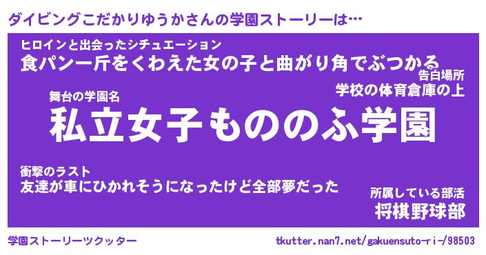 | 女子向けラノベタイトル風あだ名 | 『誰かこのダイビングこだかりゆうかを説明してください! ~契約から始まるウェディング~』 |