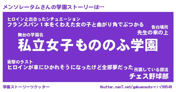 | ファンタジー風あだ名 | 『メンフェル』『ファントムメンス』 |