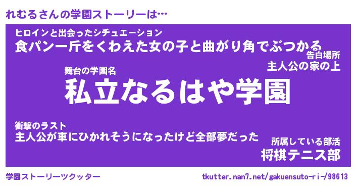 | 男性向けラノベタイトル風あだ名 | 『れむるの憂鬱』 |
