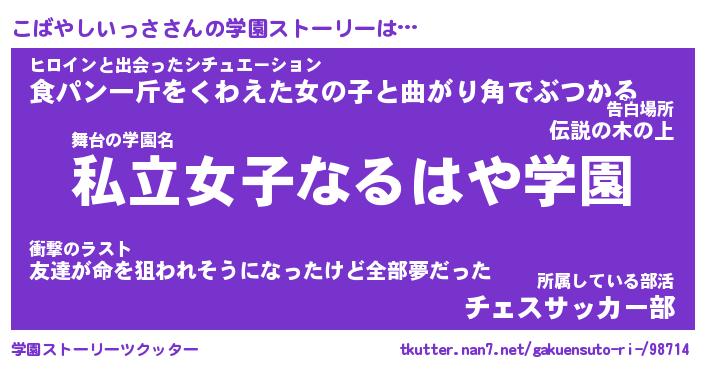 | 男性向けラノベタイトル風あだ名 | 『コバヤシイッサアートオンライン』 |