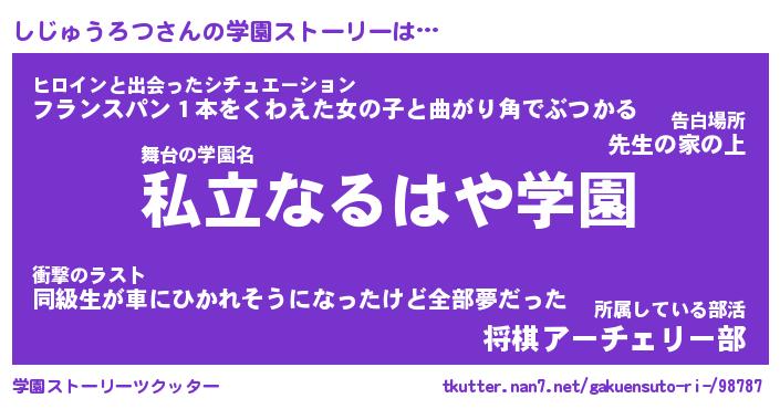 | 告白場所 先生の家の上 …「ふぃぎゅこ」 | 2月17日 06:24 |