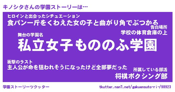 | 男性向けラノベタイトル風あだ名 | 『キノシタアートオンライン』 |