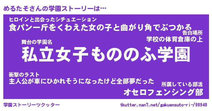 | ヘコむあだ名 | 『めるにゅー』『牛乳』『めるぷりん』 |