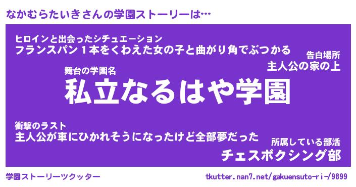 | 男性向けラノベタイトル風あだ名 | 『なかむらたいきの憂鬱』 |