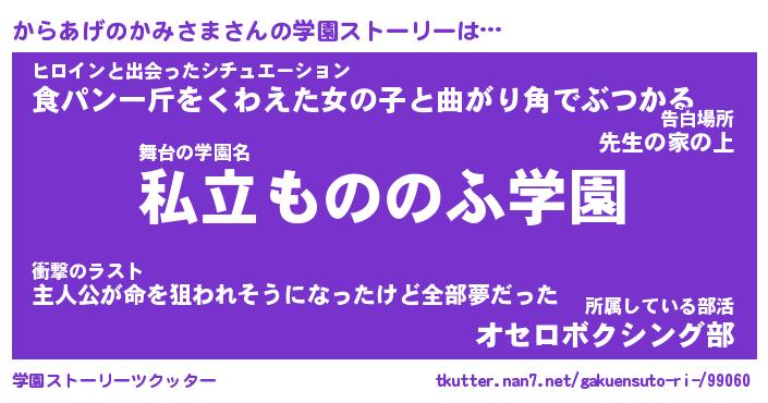 | 男性向けラノベタイトル風あだ名 | 『からあげのかみさまの憂鬱』 |