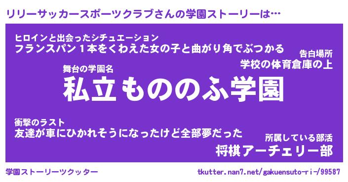 | 男性向けラノベタイトル風あだ名 | 『リリーサッカースポーツクラブの憂鬱』 |
