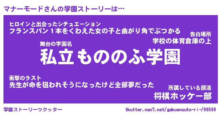 | 男性向けラノベタイトル風あだ名 | 『マナーモードの憂鬱』 |