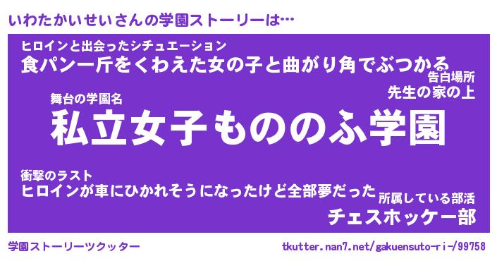 | 女子向けラノベタイトル風あだ名 | 『誰かこのいわたかいせいを説明してください! ~契約から始まるウェディング~』 |