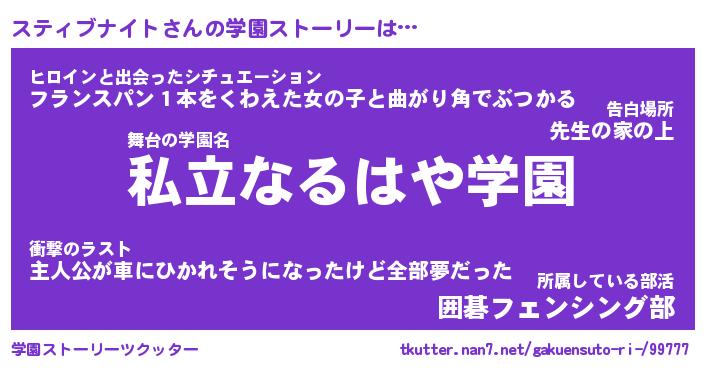 | 男性向けラノベタイトル風あだ名 | 『スティブナイトの憂鬱』 |