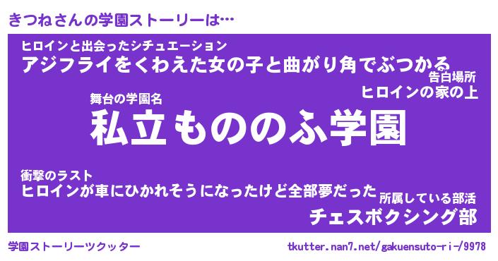 | 男性向けラノベタイトル風あだ名 | 『きつねの憂鬱』 |
