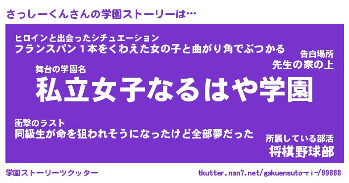 | 伝説のあだ名 | 『封印されしスナイパーさっしーくん』 |