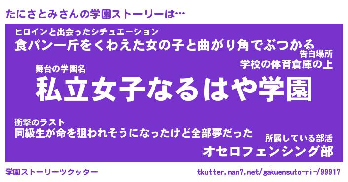 | ファンタジー風あだ名 | 『タニフェル』『エターナルタニサトミー』 |
