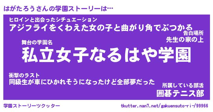 | ファンタジー風あだ名 | 『ハガフェル』『エターナルハガタロウー』 |