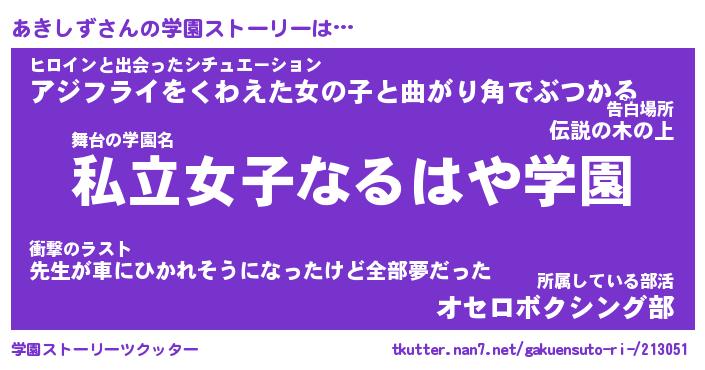 | 女子向けラノベタイトル風あだ名 | 『あきしず姫と円卓の騎士』 |
