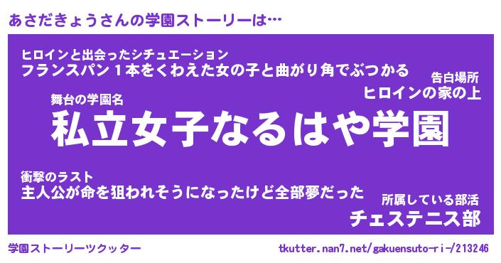 | 男性向けラノベタイトル風あだ名 | 『アサダキョウアートオンライン』 |