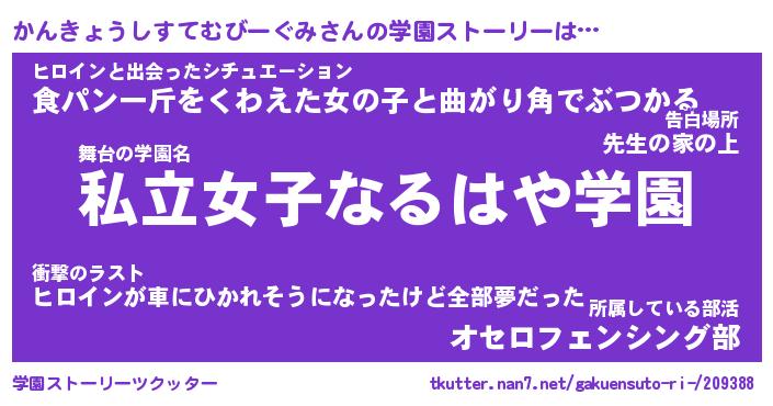 | 告白場所 先生の家の上 …「ふぃぎゅこ」 | 2月17日 06:24 |
