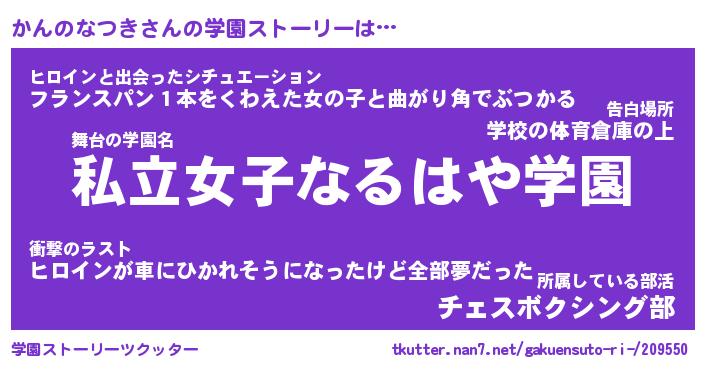 | 伝説のあだ名 | 『封印されしスナイパーかんのなつき』 |