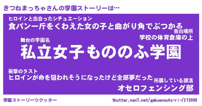| 女子向けラノベタイトル風あだ名 | 『きつねまっちゃ姫と円卓の騎士』 |