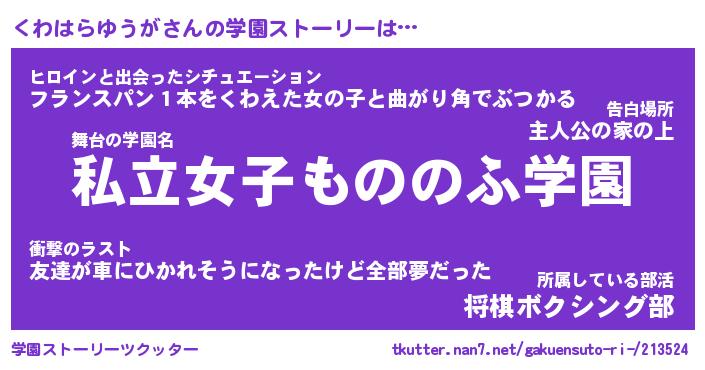 | 女子向けラノベタイトル風あだ名 | 『くわはらゆうが姫と円卓の騎士』 |