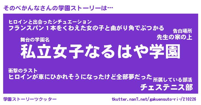 | 告白場所 先生の家の上 …「ふぃぎゅこ」 | 2月17日 06:24 |