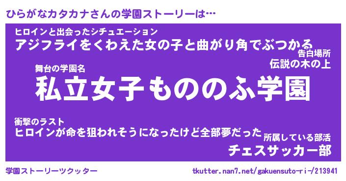 | 女子向けラノベタイトル風あだ名 | 『ひらがなカタカナ姫と円卓の騎士』 |