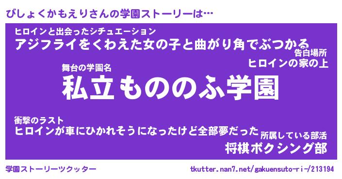 | 男性向けラノベタイトル風あだ名 | 『びしょくかもえりの憂鬱』 |