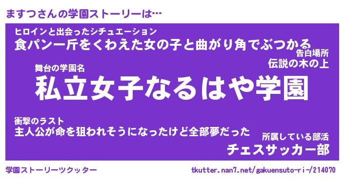 | ヘコむあだ名 | 『ますにゅー』『つくし』『ますお』 |