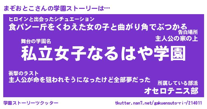 | 告白場所 先生の家の上 …「ふぃぎゅこ」 | 2月17日 06:24 |
