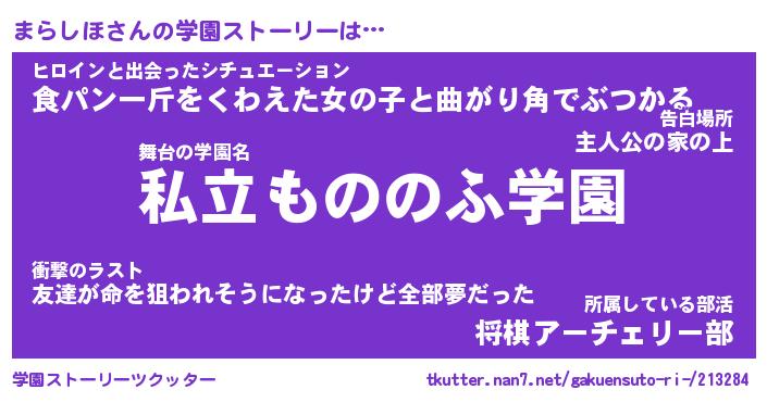 | 男性向けラノベタイトル風あだ名 | 『まらしほの憂鬱』 |