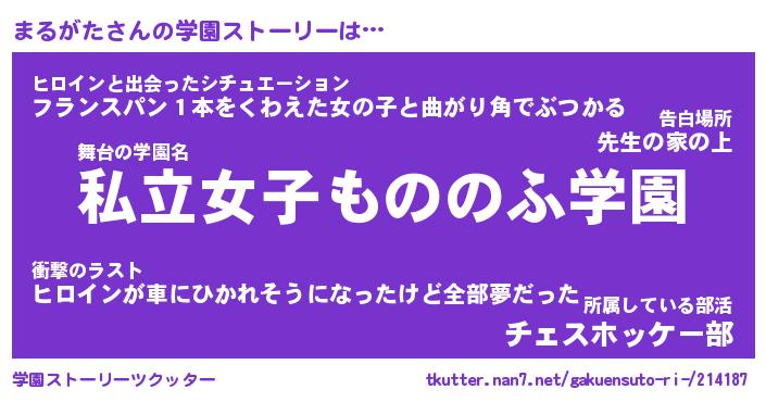 | 告白場所 先生の家の上 …「ふぃぎゅこ」 | 2月17日 06:24 |