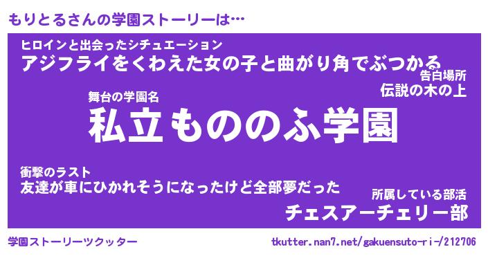 | 女子向けラノベタイトル風あだ名 | 『もりとる姫と円卓の騎士』 |